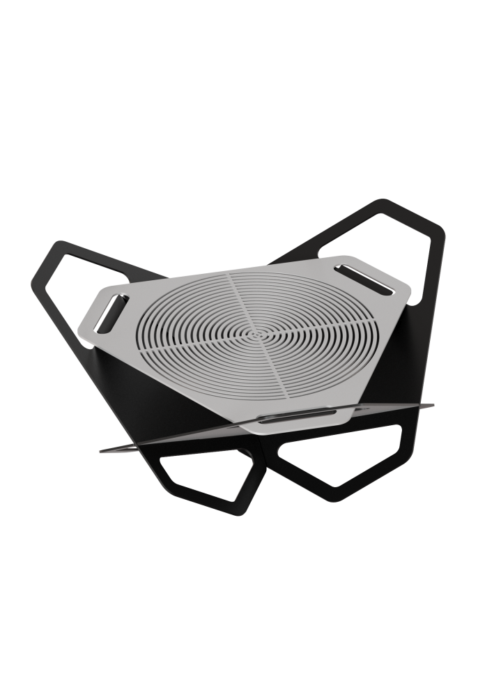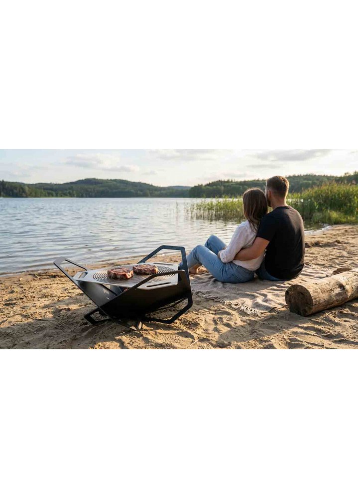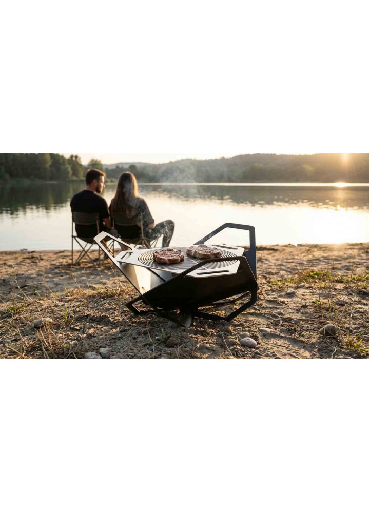 W zestawie znajduje się dopasowany ruszt, który błyskawicznie zmienia palenisko w wydajny grill. Szeroka powierzchnia grillowania pozwala na wygodne przygotowanie posiłków dla kilku osób jednocześnie. Całość łączy w sobie surową, estetyczną formę z wysoką funkcjonalnością, tworząc niezawodne centrum spotkań przy ogniu – niezależnie od tego, czy odpoczywasz na własnym tarasie, czy eksplorujesz nowe miejsca w terenie.