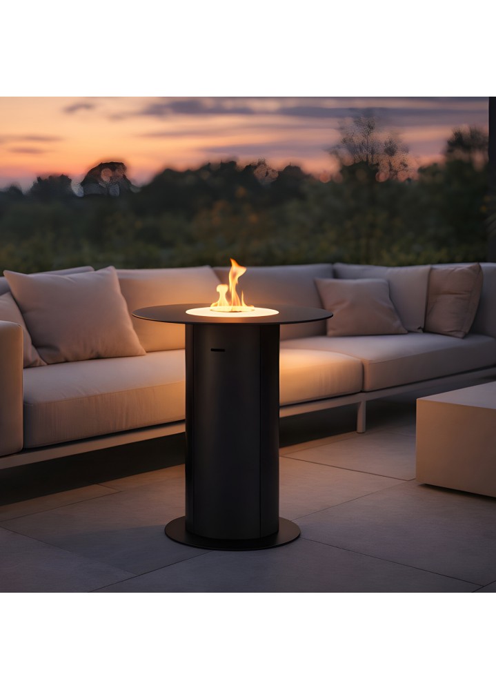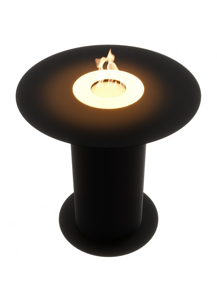 Wysoka noga i okrągły blat ø 33, ø 49 sprawiają, że kominek przypomina elegancki mebel. Solidna stalowa podstawa i odpowiednia waga zapobiegają przypadkowemu przewróceniu. Paliwo na bazie bioetanolu jest bezpieczne dla otoczenia i nie pozostawia zabrudzeń. Mimo swojej solidności, biokominek jest wolnostojący, co pozwala na jego dowolne ustawienie bez konieczności montażu. Powiększony zbiornik o pojemności 0,65 l pozwala na dłuższą radość z widoku płomieni. Wysokość biokominka (50,4 cm) sprawia, że można go umiejscowić przy kanapie, nie jest przytłaczający - wpasuje się w estetykę Twojego ogrodu czy tarasu.