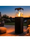 Wysoka, smukła bryła, która przyciąga wzrok i dodaje wnętrzu elegancji. Szklana osłona zwiększa bezpieczeństwo i sprawia, że płomień pali się spokojnie i efektownie. Dlatego produkt świetnie sprawdzi się do ogrodu, po którym biegają dzieci. Połączenie trwałej stali i odpornego na temperaturę szkła gwarantuje niezawodność. brak popiołu i dymu pozwala na ustawienie kominka w dowolnym miejscu.