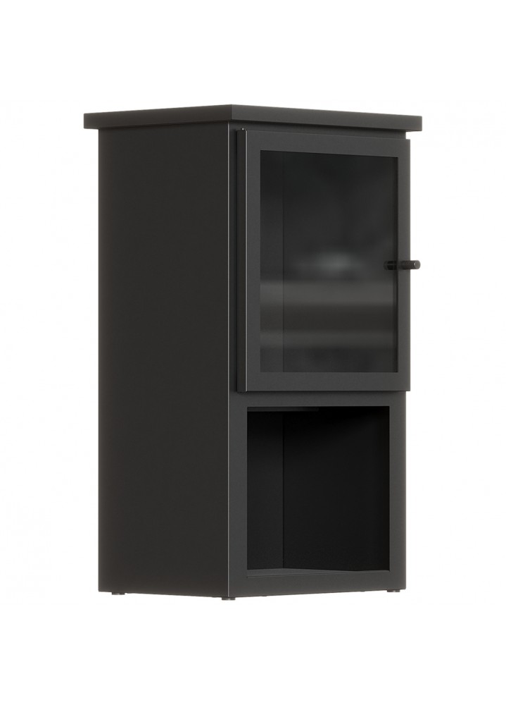 Przeszklone drzwiczki chronią palenisko, dodają elegancji i zwiększają bezpieczeństwo domowników. U dołu biokominka znajduje się miejsce, które może służyć do przechowywania drewna dodatkowo pełni funkcję dekoracyjną i podkreśla autentyczny styl.